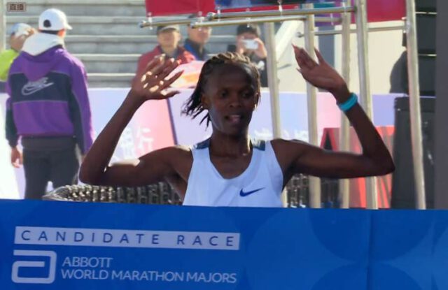 Brigid Kosgei gewann den Shanghai Marathon mit chinesischem All-Comers Rekord. (c) Livestream/Screenshot